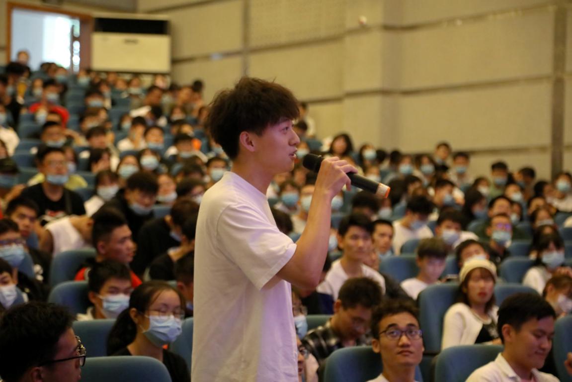 随后,刘新旺校友为人工智能学院(计算机科学与信息工程学院)近500名本科生和研究生做了“聚类数据的相似度问题与简单多核聚类方法”专题讲座,深受同学们欢迎。同学们积极提问,现场气氛热烈。