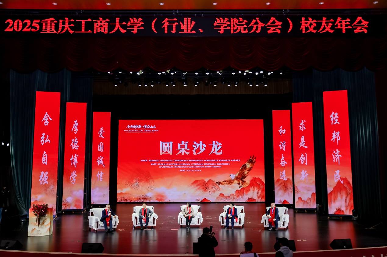 由1989级汽车制造专业校友周润丰主持,1995级经济贸易专业校友、重庆工商大学经济学院党委副书记、院长宋瑛,1987级化学专业校友、武汉金晖建设集团有限公司董事长黄搏,2004级汉语言文学专业校友、江苏品映律师事务所合伙人马双,1998级企业管理专业校友、一万企业管理咨询有限公司总经理冉江华,聚焦“校友生态圈2.0——从情感联结到价值共创”的主题开展了圆桌沙龙交流。