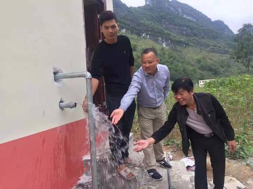 李世乾(中)与村民代表参加该村第一口井抽水仪式