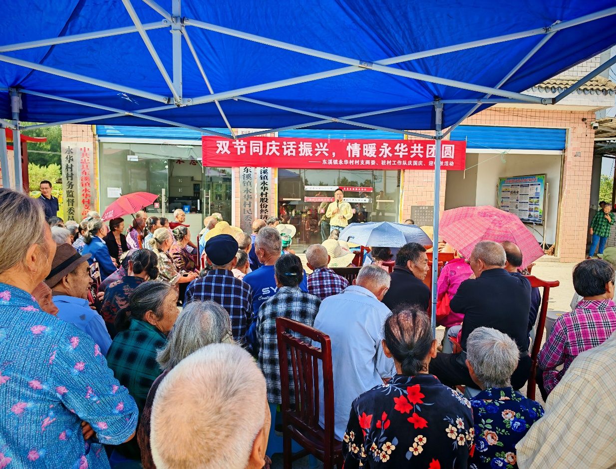 9月28日,由驻村工作队与村“两委”精心策划的“双节同庆话振兴,情暖永华共团圆”主题活动在海拔450米的忠县东溪镇永华村村委小院隆重开展。蒸腾糯米的清香和150余位银发长者久违的欢声笑语不时飘荡在小院的上空,整个山村都洋溢着温暖、喜悦的节日气氛。
