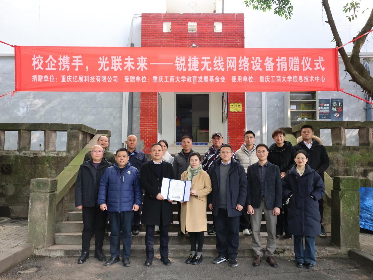 2026年1月8日,重庆工商大学举行重庆亿展科技有限公司校园网设备捐赠仪式。此次活动旨在深化校企协同,以实际行动支持高校教育教学基础设施建设,专项用于学校南岸校区南2研究生公寓无线网络升级覆盖。