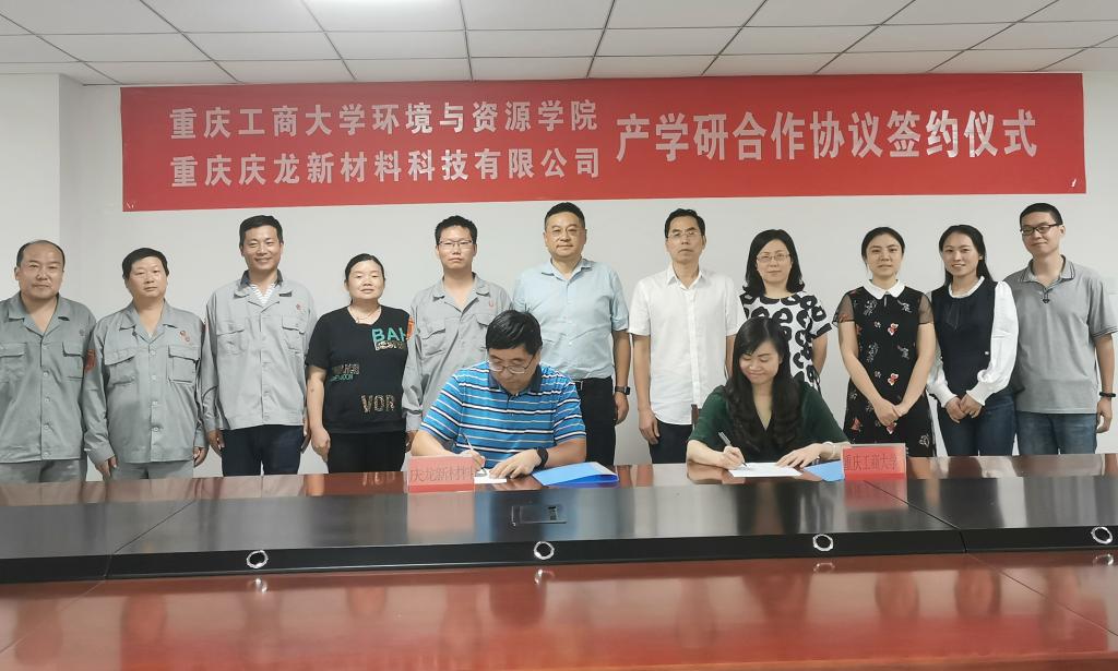 签约仪式现场,王敬春董事长对公司基本情况进行了介绍,对双方合作寄予厚望。王永范总经理对公司项目的工艺技术进行了介绍,明确了合作的切入点。王星敏院长介绍了环境与资源学院的基本情况,表达了加强合作,实现共赢的愿望。随后,双方针对人才培养、技术难题解决、项目合作开展等内容进行深入讨论,现场气氛融洽。在热烈的掌声中,双方签订了《重庆工商大学与重庆庆龙新材料科技有限公司产学研合作协议书》。
