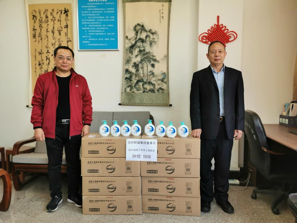 在抗击新冠肺炎这场没有硝烟的战斗中,母校的疫情防控工作始终牵动着校友们的心。4月27日,人工智能 计算机科学与信息工程学院2002级电子信息工程专业校友、深圳研盛集团董事长钟煌为我院师生捐赠了一批抑菌洗手液,助力我院学生返校复学。