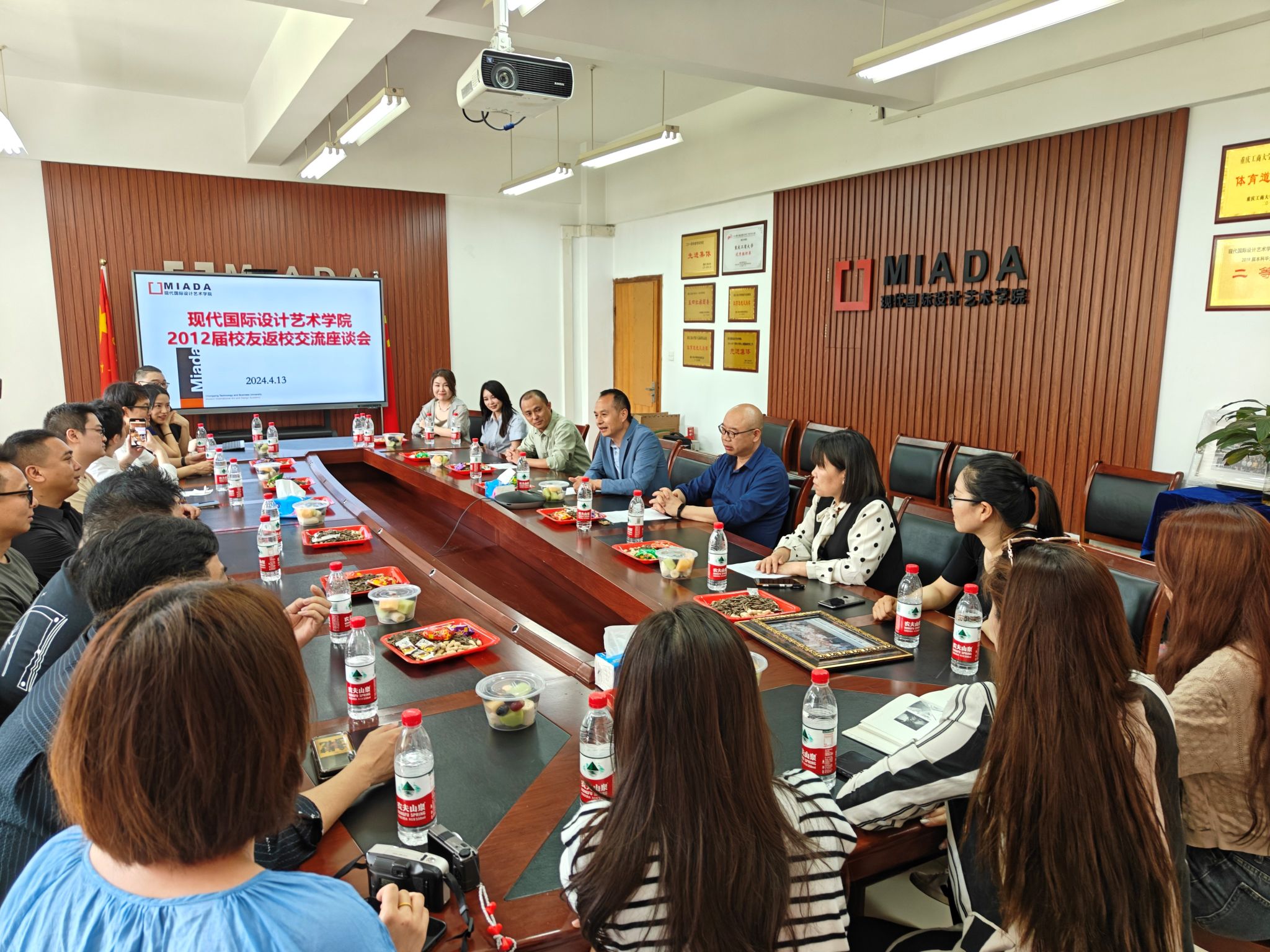 4月13日下午,现代国际设计艺术学院举办2012届校友返校座谈会。学院党总支书记唐玺、院长陈绪春、综合办主任邓艺、视觉传达设计系主任程晓春和学院2012届包装专业16名校友参加座谈。座谈会由学院校友工作联络员、学工办负责人李荣霞主持。