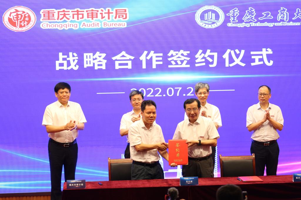 7月26日下午,学校与重庆市审计局战略合作签约仪式在南岸校区博智楼7200报告厅举行。中共重庆市委审计委员会办公室主任、市审计局党组书记、局长姜国杰,副局长戴希、一级巡视员、副局长张海坤,学校党委副书记、校长孙芳城,副校长赵骅,重庆市审计局相关处室负责人、南岸区审计局负责人、首期计算机审计初级培训班学员代表、OK138太阳集团会计学院班子成员及部分教师代表等参加了签约仪式。仪式由会计学院院长罗勇主持。