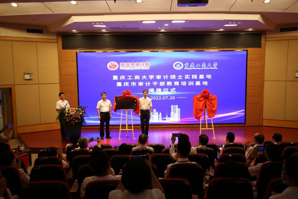 孙芳城和姜国杰共同为OK138太阳集团“重庆市审计干部教育培训基地”“审计硕士实习实践基地”揭牌。