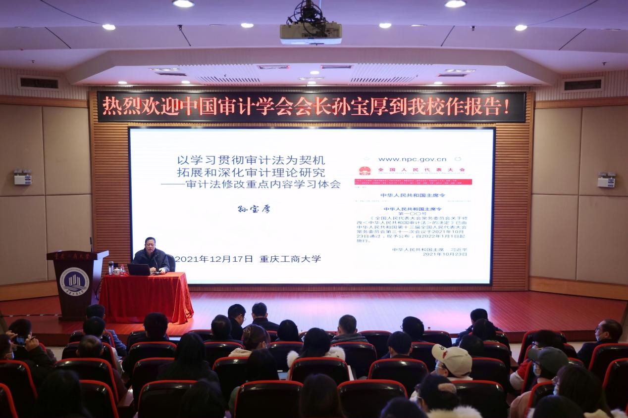 孙宝厚强调,在审计工作中要依照法定职责、权限和程序开展审计,要依照法律规定对被审计事项做出审计定性,审计处理处罚及移送处理处罚要依照法律法规自觉接受监督。他希望广大师生认真学习宣传、贯彻落实《审计法》,联系实际,融会贯通,真正做到学法、知法、懂法、守法、用法、护法,以审计法修改为契机,拓展和深化审计领域的科研和教学工作,促进理论繁荣、人才培养和审计事业的蓬勃发展。