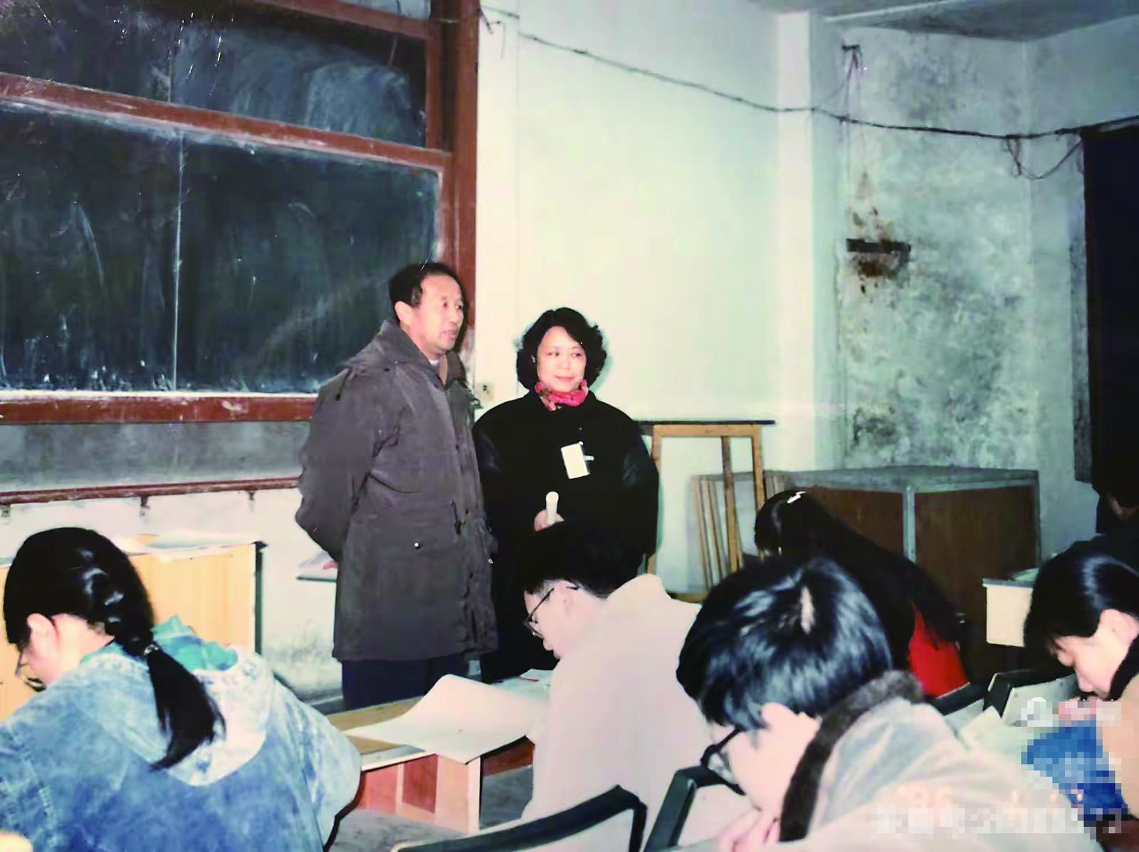 ▲“大战十月”,作者(左)在教室检查测试情况。