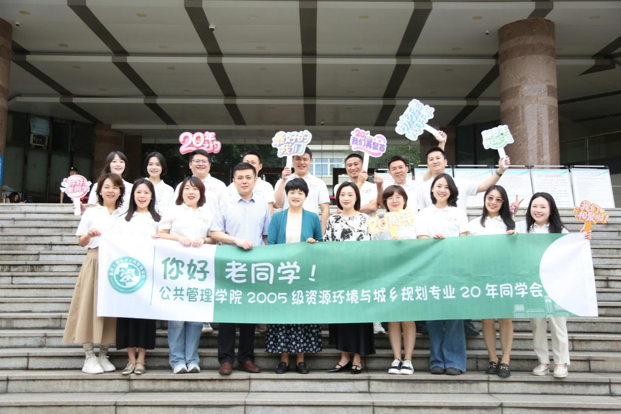 二十载春秋流转,廿年情谊依旧。5月17日,公共管理学院迎来了2005级资源环境与城乡规划专业校友的“回家之旅”。以 “光阴荏苒风华在 岁月不减校友情”为主题的同学会在学院的精心策划与组织下顺利举行,二十余名校友与学院领导、教师代表齐聚一堂,共叙青春往事,展望未来发展。公共管理学院党委书记陆嘉、副书记谢书楠、团委书记邓丽以及城乡规划系李斌教授、罗光莲教授出席了本次活动。