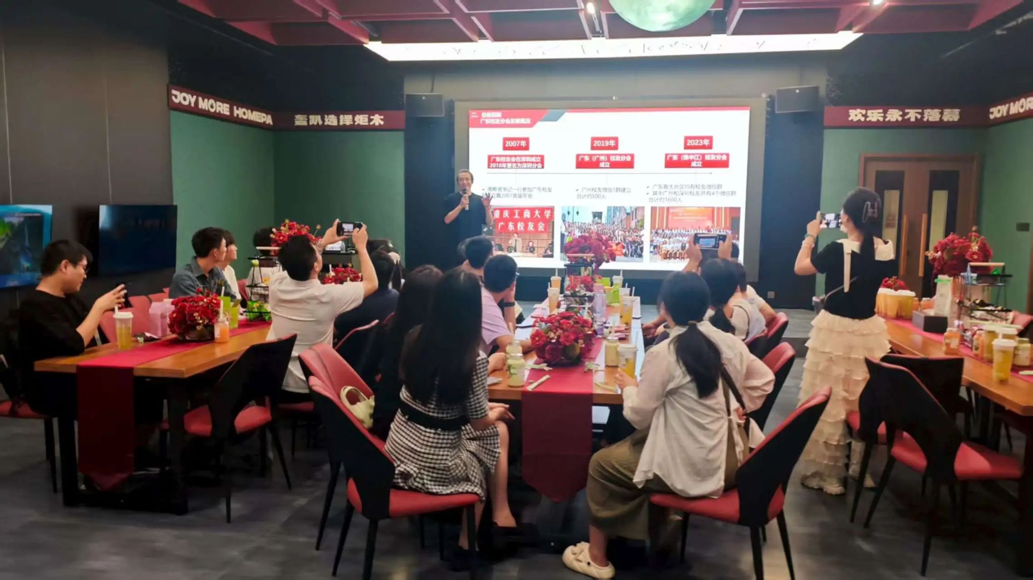 随后,2008级设计专业校友、广东(广州)校友会副会长张楷玄系统介绍了广州校友会的组织架构与发展历程,回顾了成立以来的各项活动。从校友企业走访到迎新晚宴,一场场活动充分展现了校友会六年深耕来的凝聚力与活力。他重点阐述了校友会能为2025届毕业生提供的多方面支持,鼓励新校友在遇到困难时积极寻求组织帮助,让初入羊城的校友感受到校友会大家庭的温暖。
