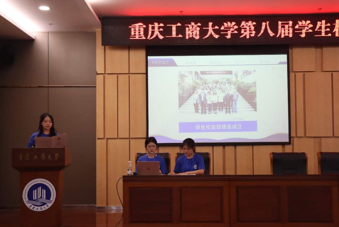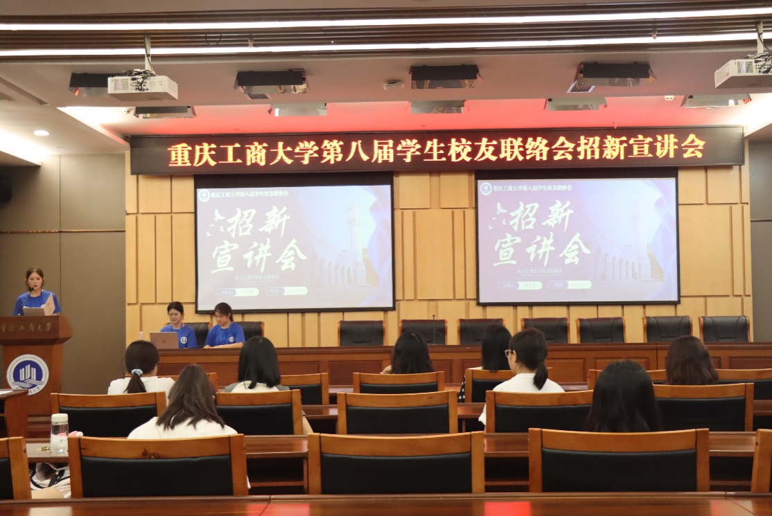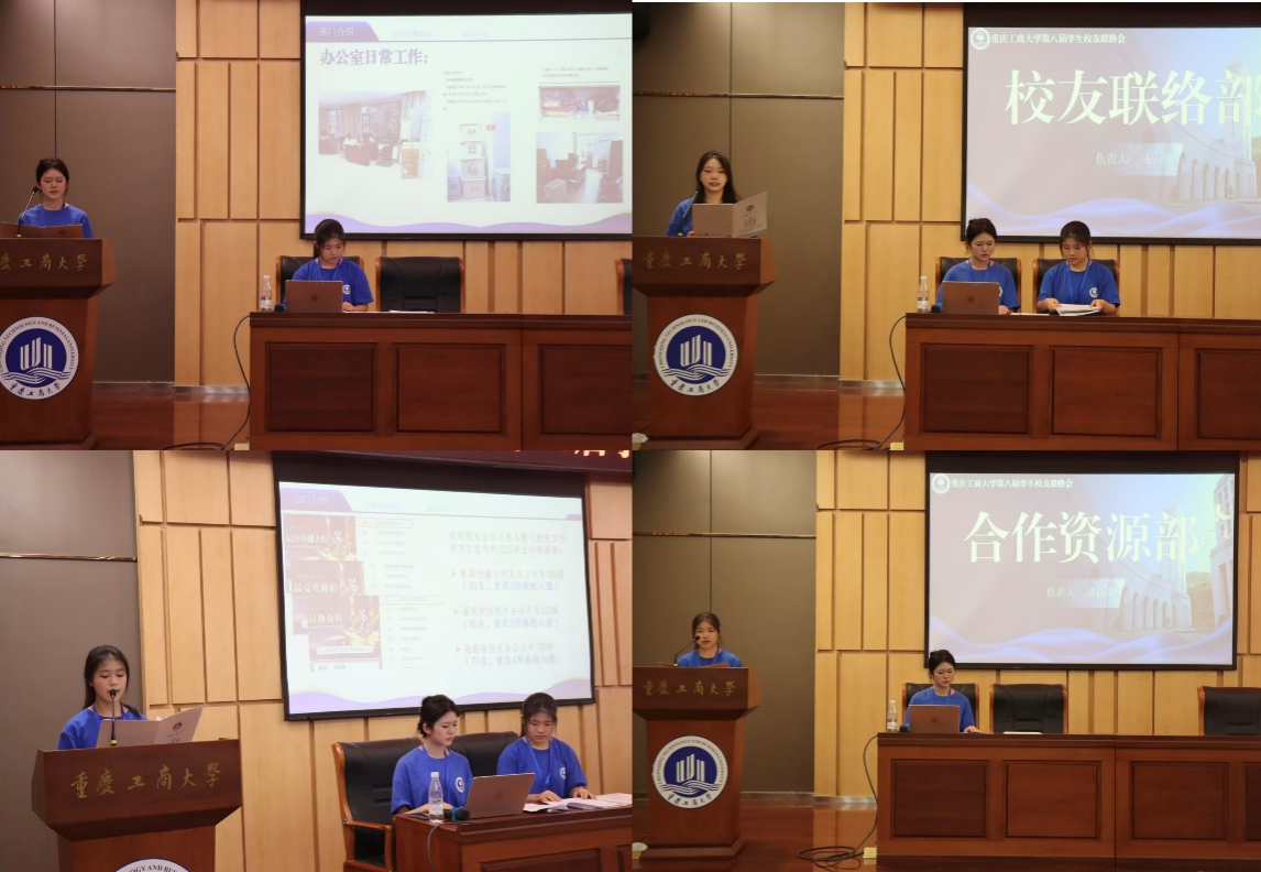 随后,各部门负责人依次登台,结合工作介绍部门职责与招新要求。办公室负责人谢嘉铭阐述了部门在资料归档、物资管理、值班协调等方面的基础保障作用;校友联络部负责人马一丹围绕“校友返校接待”核心职责,展现部门在维系校友情感中的关键作用;新媒体中心负责人袁宜婷则以“线上宣传窗口”为定位,展示了重庆工商大学校友会微信公众号现阶段取得的亮眼成果;合作资源部负责人潘雨欣介绍了校友信息系统维护、校友企业捐赠对接、教育发展基金会公众号运营等工作。