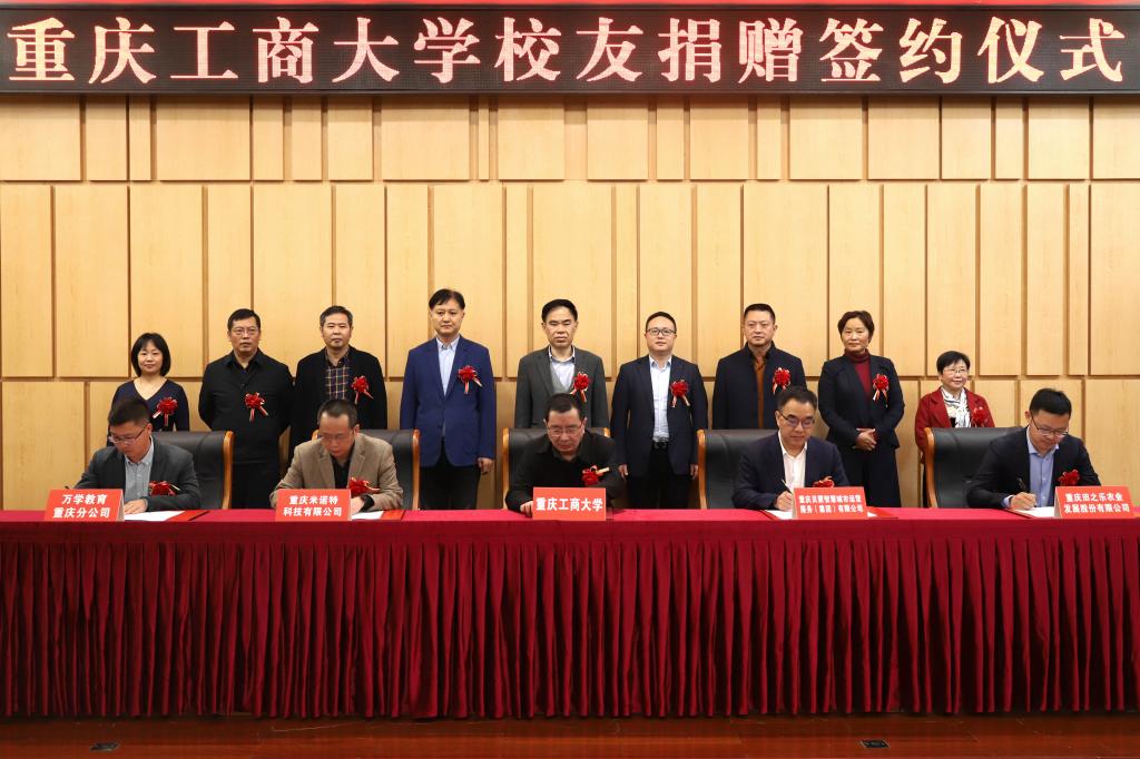 4月2日,校友捐赠签约仪式在南岸校区图书馆一会议室举行。党委书记李志雄,党委常委、副校长赵骅,89级会计专业校友、重庆贝蒙智慧城市运营服务有限公司董事长苏醒,92级会计专业校友、重庆米诺特科技有限公司总经理赵昌波,05级贸易经济专业校友、重庆田之乐农业发展股份有限公司董事长李桂林,05级旅游管理专业校友、万学教育重庆分公司总经理蒋世伟,学校校友会会长罗勇,基金会理事长何军等出席捐赠仪式。校庆办、校友办、基金会、各二级学院等部门负责人参加了捐赠仪式。仪式由罗勇主持。
